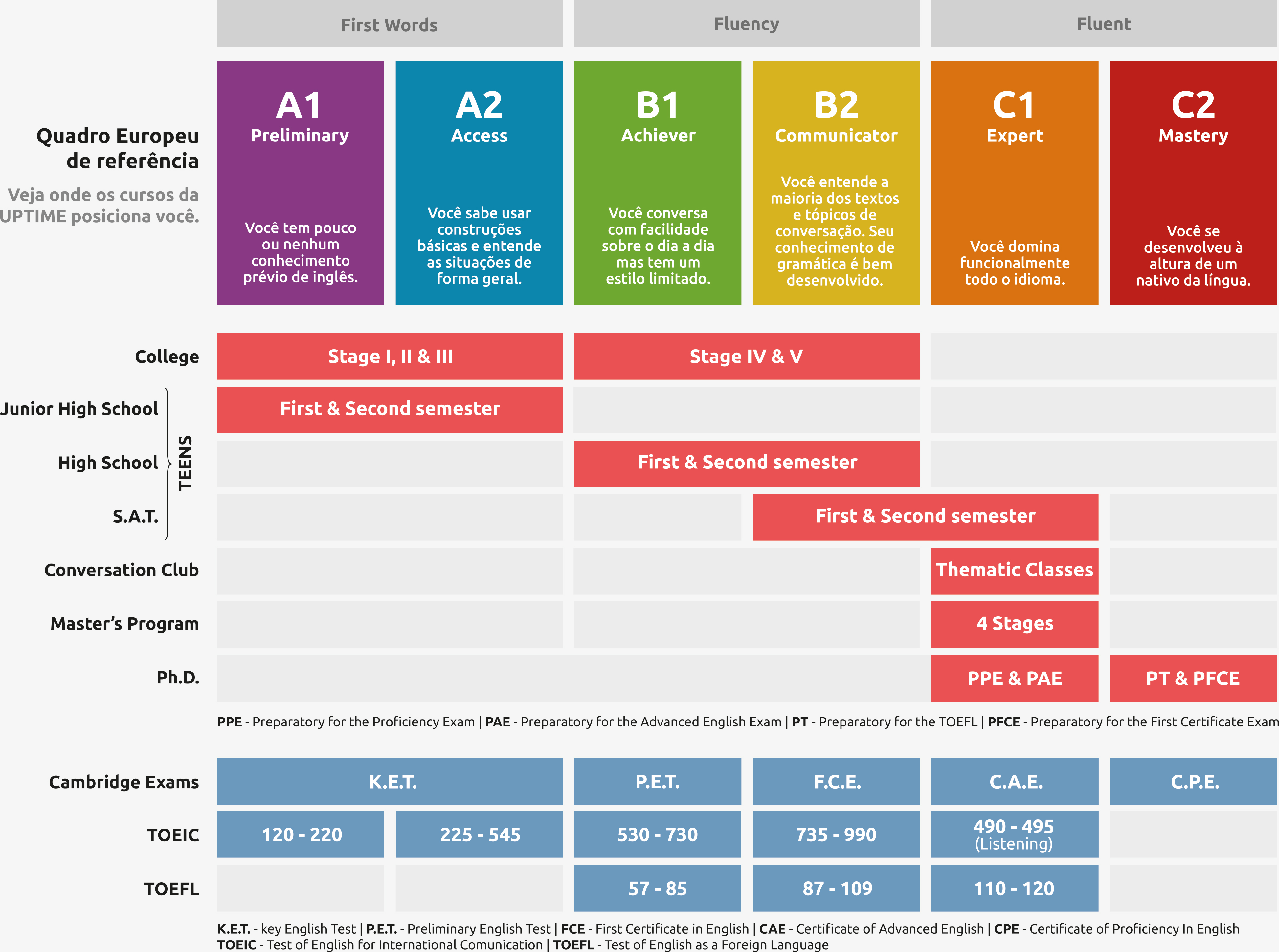 A escola tem opções de cursos para adolescentes, jovens e adultos, bem como para quem ainda não sabe nada e para quem já é fluente. Escolha o seu curso and Welcome to UPTIME!